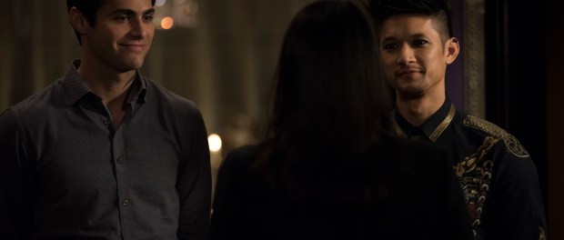 SHADOWHUNTERS – “What Lies Beneath” – The Shadowhunters try to track down the new imposing threat, while Jace has a suspicion that Jonathan is back and behind the mundane attacks. Simon tries to figure out what The Seelie Queen did to him during his time in the glade. Alec decides to host a Lightwood family dinner at MagnusÕ house after a surprising visit from Maryse. This episode of “Shadowhunters” airs Tuesday, April 3 (8:00 – 9:00 p.m. EDT) on Freeform. (Freeform/John Medland) HARRY SHUM JR., NICOLA CORREIA-DAMUDE, MATTHEW DADDARIO