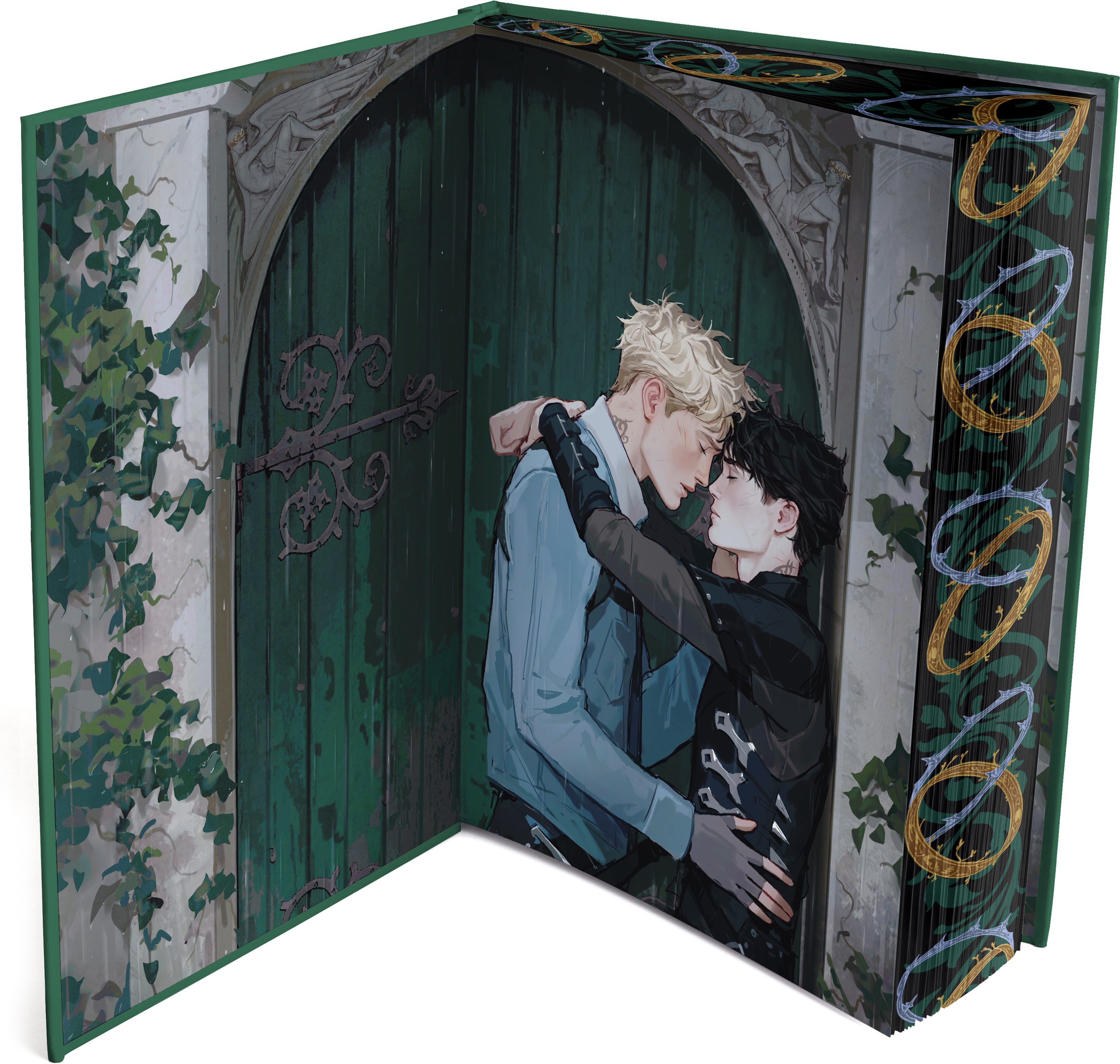 “This edition features unique printed art of on the edges, a unique garnet case with a gold foil design, and exclusive full-color endpaper art of the Seelie Queen by Adelle Kincel.”