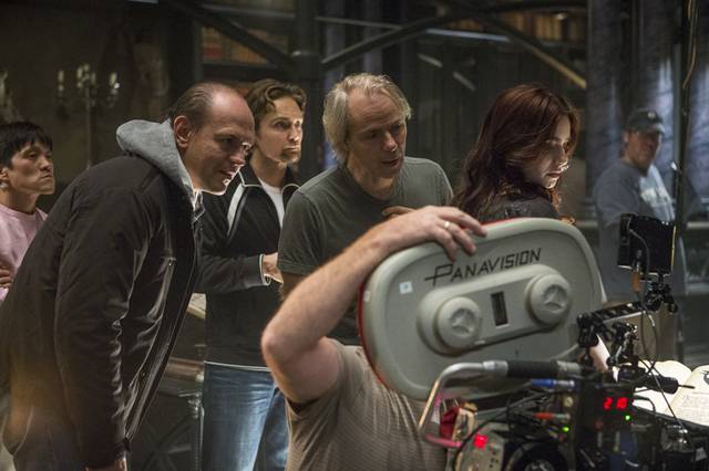 Production shot with Robert Kulzer, Harald Zwart and Lily Collins